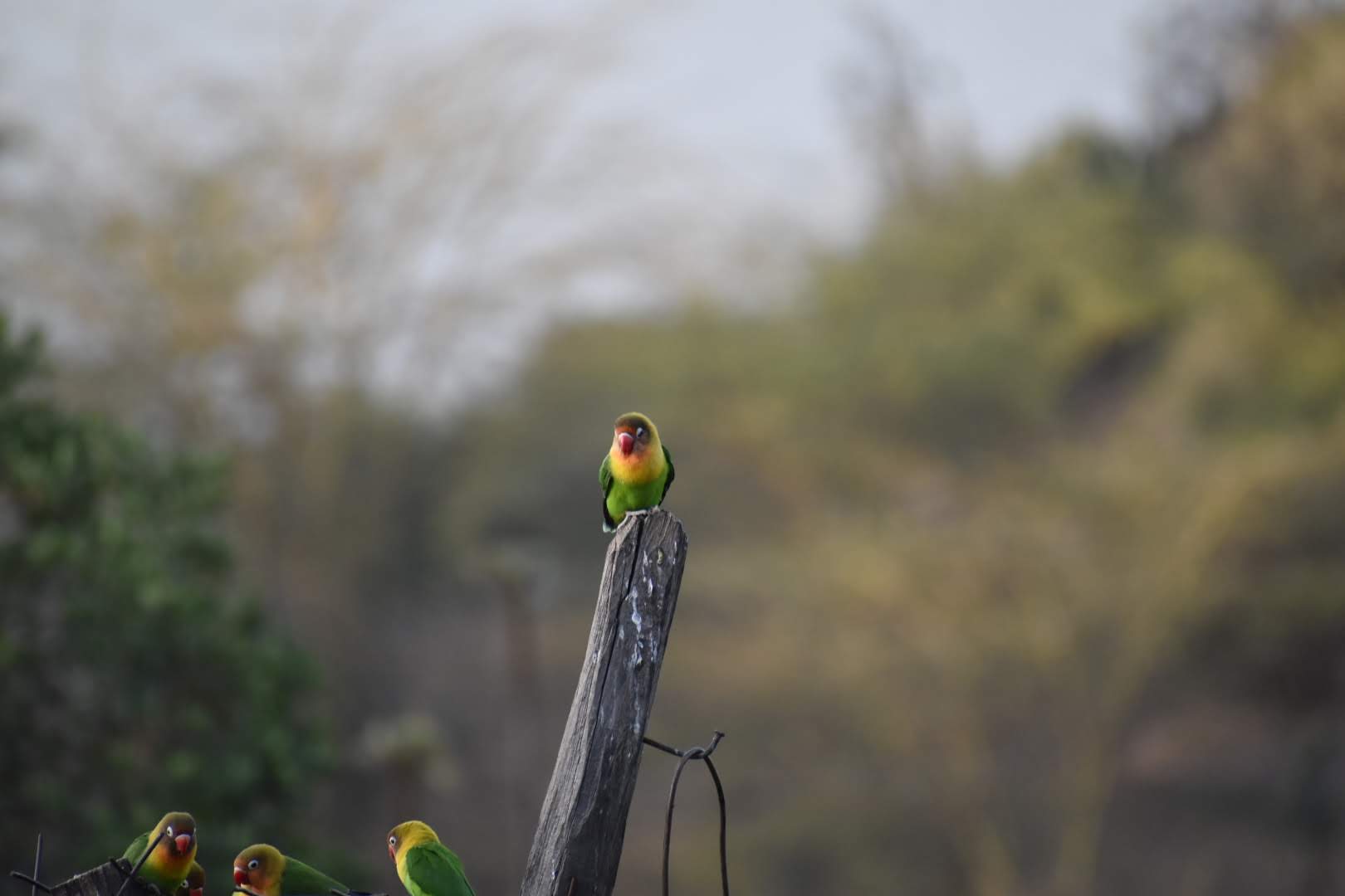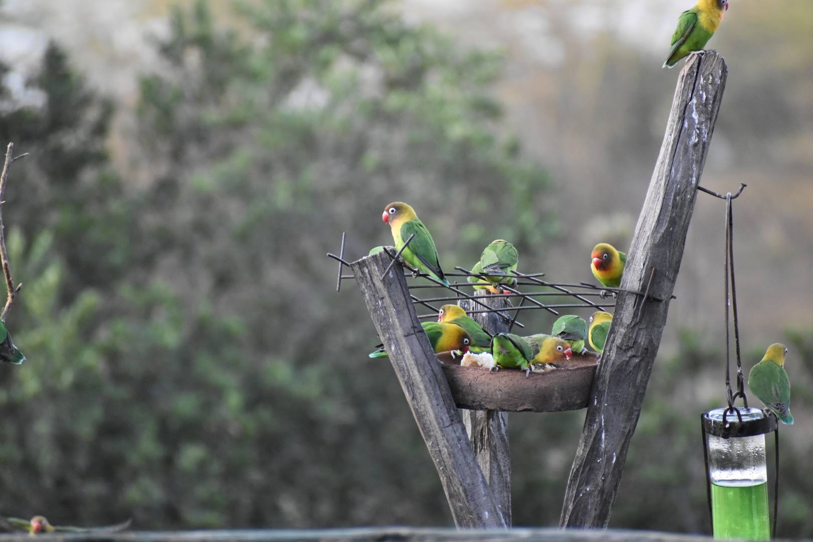 We got going quickly and were soon back at the patio overlooking Lake Elmenteita for an early breakfast. Caroline, our server from dinner the previous night, was there and soon we were tucking into another breakfast and watching a flock of lovebirds pecking on the Ugali that the staff had deposited in their bird feeder.