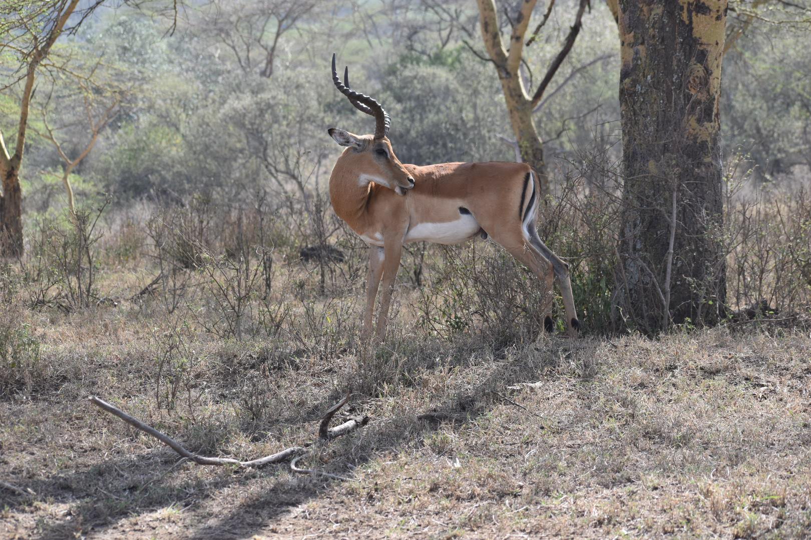 We set off after a few minutes of watching the monkeys, continuing along the dirt track that bordered the eastern shore of the lake. We first saw an Osprey high up on a tree branch, a few Waterbucks, Impalas and then, on another tree, its trunk fully submerged in the lake, an African Fish Eagle. David told us to listen for the “Sound of Africa”; we did and sure enough it sounded off shortly thereafter! Listen to it here (credit Rory Nefdt).